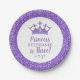 Purple Princess Tiara Crown Glitter Girl'sBirthday Paper Plate