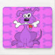 A fun illustration of a purple puppy holding a dog bone in its mouth while wagging happily in anticipation. A great mousepad for dog lovers.