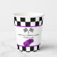 These paper cups feature a black and white chequered flag and purple race car theme. Font styles, colours and more can easily be changed by clicking "edit design" or "customise further". There are also matching party invitations, address labels and more here in my store on Zazzle. Please stop in and take a look around. Be sure to follow me for new product updates! Thank you for your interest in SapphireDesigns!