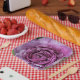 Purple floral paper plate.