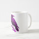 This front-facing image features a single violet raven, centered boldly on the mug with vivid feather texture and striking contrast.