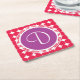 Purple & Red Polka Dot Monogram Square Paper Coaster