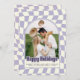 Purple Retro Groovy Chequered Happy Holidays Photo Holiday Card