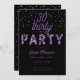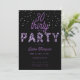 A simple, modern, elegant and chic 30th birthday party invitation template featuring a black background, the word PARTY covered in purple rhinestones (simulated, not real stones, this is a digital effect), modern calligraphy script and typography in white. A chic, timeless design for a woman on her thirtieth birthday.