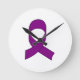 Purple Ribbon Drawing Round Clock