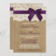 Purple Ribbon On Kraft & Lace Bridal Shower Invitation
