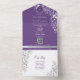 Celebrate your day with this elegant purple floral all-in-one wedding invitation, featuring romantic botanical line art, glowing string lights, and a refined modern layout. This eco-friendly design includes your wedding website, QR code for RSVP, and a unique detachable mini-timeline card guests can bring with them to the celebration.