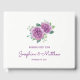 This wedding guest book features pretty purple roses in a watercolor style. You can personalise it with bride and groom names and wedding date both on the front cover and the spine. This guest book is part of the Purple Rose Wedding Collection which includes a full range of matching wedding stationery such as wedding invitations, reply cards, information cards, address labels, postage stamps, envelopes, favour boxes, wishing well cards, programs, menus, bridal gifts and much more. Visit the collection page in our store to see the full range of products that you can personalise for your wedding.