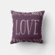 Rustic flowers and leaves with a purple background and featuring the word "Love". This rustic floral throw pillow is perfect for Valentine's Day or just a lovely addition to your home or dorm room.