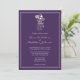 Purple and lilac rustic mason jar wedding invitations with soft lilac flowers in a vintage mason jar on a purple background.