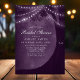 Invite your loved ones to celebrate the bride-to-be with this enchanting bridal shower invitation. Featuring a rustic tree silhouette adorned with twinkling string lights and personalised with the couple's initials, this invitation sets the tone for a heartwarming gathering. The romantic purple backdrop adds a touch of elegance and whimsy, perfect for an outdoor or garden-themed shower.