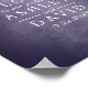 My thoughts on this product was excellent. Well printed in a gloss finishing and just the size l ordered. It arrived in good condition and am overall satisfied with the product. The printing turned out great. I was quite surprised with the finishing touch to the poster. The semi gloss was just right and a perfect size to display at the wedding.