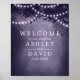 Purple Rustic Tree Lights Wedding Welcome Sign