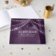 Capture cherished memories of your rustic wedding with this enchanting guest book. A majestic tree silhouette adorned with twinkling string lights against a romantic purple backdrop sets the scene for your guests' heartfelt wishes. This guest book will become a treasured keepsake,