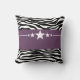 Trendy and modern Sassy Star Zebra Pillow featuring a chic black and white zebra print background and a bold purple border adorned with a fun star motif. This girly design may be customised with the personalised text of your choosing. Click "Customise It" to find more personalisation options.
