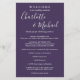 Elegant purple signature script wedding weekend program featuring signature style names. Personalise with your wedding weekend details set in chic white lettering. Designed by Thisisnotme©