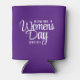 Celebrate IWD (International Women's Day) on March 8th with this purple can cooler, which features this special day in an elegant upright script. Reverse shows identical design.