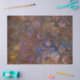 Purple scroll work stencil like flowers over a deep blue background with gold glitter throughout the design. Perfect for decoupage, crafts, or gift wrapping. Make sure to check out the matching gift bag!