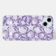 Customize this purple shell pattern iPhone 15 plus case with your your name in a trendy modern CAP font in purple on white. It's so modern and beachy!