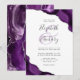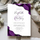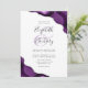 A purple watercolor agate design trimmed with faux silver glitter appears in two corners of this elegant design. Personalise it with the couple's names in charcoal grey handwriting script over a large, pale purple ampersand. Add the wedding details in copperplate and italic fonts on a white background. The reverse side features a matching purple and silver agate design.