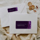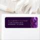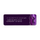 The right-hand edge of this elegant modern wedding invitation return address label features a purple watercolor agate border trimmed with faux silver glitter. The customisable text combines silver grey Roman serif and copperplate fonts on a deep purple background.