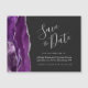 This elegant save the date magnetic card features a purple watercolor agate border trimmed with faux silver glitter. The customisable text combines silver grey handwriting script, copperplate and italic fonts on an off-black background.