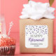 Happy retirement favour tag sticker with purple and silver confetti pattern.