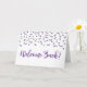 Welcome back card with Silver and Purple confetti pattern. Perfect to welcome employees back to work.