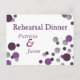 Rehearsal Dinner Invitation with purple & silver dots. Note that this is a postcard that can be put into another envelope, but this particular design does not come with envelopes, making it an economical choice. However, there is a version that comes with an envelope!