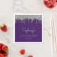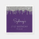 Purple Silver Glitter Drip 21st Birthday Party Napkin