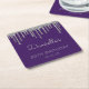 Purple Silver Glitter Drip 30th Birthday Party Square Paper Coaster