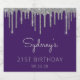 Purple Silver Glitter Drip 40th Birthday Party Sparkling Wine Label