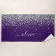 Purple Silver Glitter Girly Glam Monogram Beach Towel
