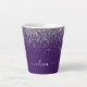 Purple and Silver Sparkle Glitter Script Monogram Name Latte Coffee Cup Mug. This makes the perfect sweet 16 birthday, wedding, bridal shower, anniversary, baby shower or bachelorette party gift for someone that loves glam luxury and chic styles.