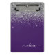 Purple Silver Glitter Girly Glam Monogram Mini Clipboard