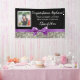 Silver glitter, Purple bow and ribbon image. Add your custom graduation girl's photo picture to this elegant silver glitter sparkle print with bow. Pretty bling for the graduating senior year diva girly girl! Custom printed personalised name banner. girls graduation party. Personalised outdoor or indoor graduation party sign banner with your graduate's year, name, high school. Spectacular way to congratulate the graduate and welcome family and guests to your graduation party .