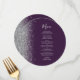 The left-hand edge of this elegant modern wedding menu features a silver faux glitter border. The customisable text combines silver grey whimsical handwriting script and copperplate fonts on a dark purple background. The reverse side features a matching purple and silver glitter design.