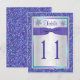 This glittery festive purple, aqua blue, turquoise, pink, and silver grey table number postcard has a drak lavender purple PRINTED ribbon with FAUX glitter (PRINTED) snow flakes on it that matches the winter Quniceanera party invitation shown below. ***You MUST change the number 11 to each number that you need, add it to your cart, and then come back and repeat the process with each number that you need. Quantity discounts may apply once you add all the items to your cart. If you have any questions or change requests contact niteowlstudio@gmail.com.