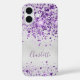 Purple silver glitter sparkles monogram name Case-Mate iPhone case