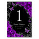 Purple silver Quinceanera celebration table number cards. Features, script font, glitter silver butterflies, watercolor roses and tiara. Perfect for an elegant princess style glam celebration. Personalize with your own details. Printed Zazzle invitations or instant download digital printable template.