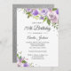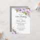 Purple Silver Sparkle Floral 70th Birthday Invite