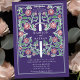 Set the tone for your mediaeval fantasy wedding with a bold invitation design—a grand sword surrounded by florals against a purple background. Perfect for couples dreaming of an epic, romantic celebration. Personalise it for your needs. NOTE: The silver featured in this design is NOT real foil.