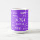 Purple colour mug for sisters. Give yourself a gift and share one or more with your sisters. Let everyone know how important your sister or sisters are to you. WRAPPED in purple colour word "Sister" is typled in a variety of fonts set horizontally and vertically. At the bottom of the mug it notes "Sisters Forever". PERSONALIZE can change name "Sister" to a different word (Brothers, Friends, Cousins, etc). And can change phrase "Sisters Forever" to a very brief note (examples: Reunion 20xx, One Love, etc). Watch on viewer to keep text in provided area. EDITOR all fonts can change size, and position to fit name and phrase, and all colours can be edited for the occasion. VIDEO Watch a video on how to edit in my MEDIA at Zanyjean. PURCHASE for yourself, a birthday gift, fun saying, make a statement, encouragement, or keepsake. Visit the ZanyJean store and collections to view coordinating products in this design line. CONTACT: For help and custom adaptation requests, click on the MESSAGE button and send a note to the designer. If you like the designs on ZanyJean click on the FOLLOW button to watch for new designs and content. Thanks for visiting.