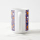 Bring the ultimate Halloween party atmosphere to your home with this vibrant mug! It features a rich, detailed seamless pattern bursting with cheerful pumpkins, spooky skulls, flying bats, witch hats, and fun potion bottles all set against a bold purple background.