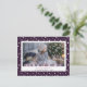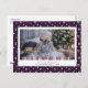 Custom purple photo Christmas postcards featuring white stars and gold snow on purple background. Easily personalise this purple Believe in the magic of the season postcard with your image, text, year and a family name. You can also change the background and font to any colour.