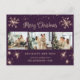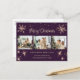 Purple photo Merry Christmas and Happy New Year postcard featuring a photo collage with stars, snowflakes and a beautiful hand-lettered holiday greeting in a festive script font. Easily personalise this purple holiday postcard with your photos, family name and text. The background can be customised to any colour.