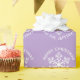 A tiled pattern of a white snowflake on a light purple background with "Merry Christmas" from the family around it.