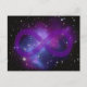 There is a semi-transparent purple infinity symbol against a purple space image. Galaxy Cluster MACS J0717 thanks to NASA and Hubble program.