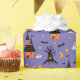 A spooky and colourful haunted house pattern featuring eerie castles, bats, ghosts, crescent moons, and creepy trees on a rich purple background. This festive wrapping paper is perfect for October birthdays, Halloween party favours, and seasonal gift-giving with a bold, traditional vibe.
