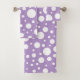 A bold spot pattern with uneven large white spots on purple / mauve.